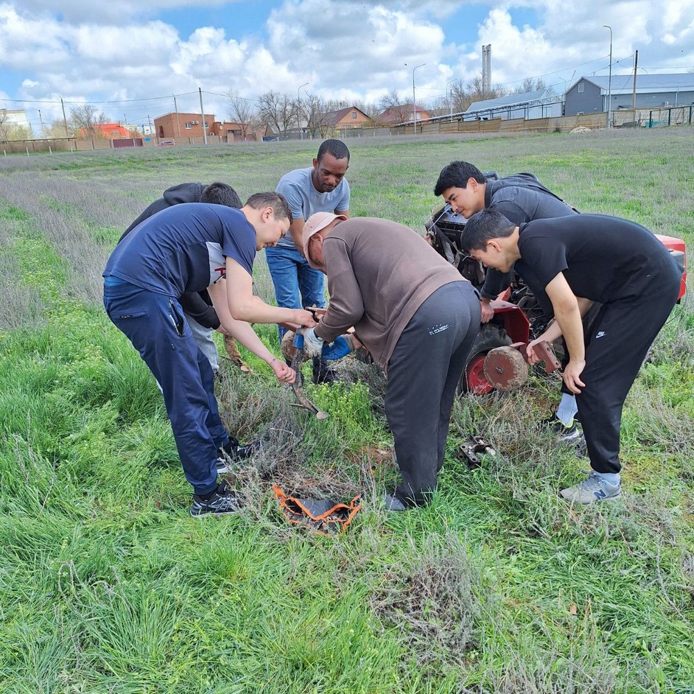 Также в ходе практики профессор кафедры агроинженерии д-р техн. наук Валерий Эвиев, ведущий научный сотрудник КНИИСХ им. М.Б. Нармаева канд. с.-х. наук Николай Цаган-Манджиев, учебный мастер кафедры агроинженерии Владимир Самтанов и заведующий мастерскими кафедры агроинженерии Сергей Писаренко провели со студентами мастер-класс по подготовке минитрактора Беларус 132Н к полевому сезону, формированию машинно-тракторного агрегата, включающего минитрактор и культиватор, и выполнению уходных работ за посевами прутняка на экспериментальном поле КалмГУ.