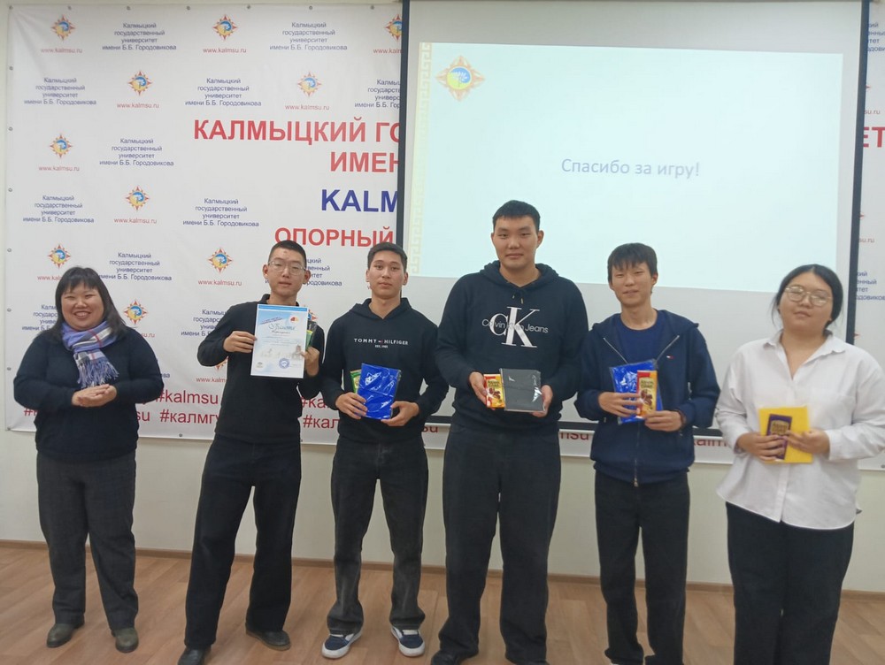 Так оценили общеуниверситетскую интеллектуальную игру «…и длит свой век в содружестве с другими» ее участники. Состояла она из трех раундов, посвященных 105-летию автономии республики, 160-летию Элисты и 55-летию нашего университета. Назвали мы ее цитатой из стихотворения Д.Н. Кугультинова. Согласитесь, кратко, но емко? Это же Давид Никитич! И город, и университет, и республика в целом живут в составе большой страны, разделяя все вехи ее истории. Распространение знаний по истории своей республики, страны, воспитание уважения к своей культуре – одно из направлений нашей работы.