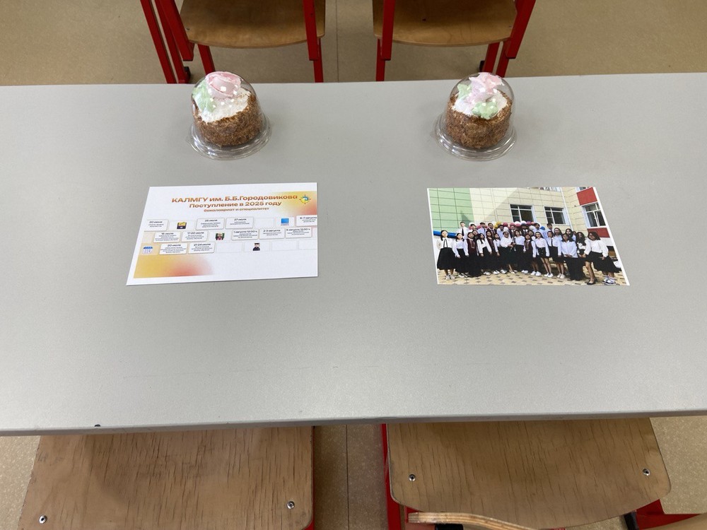 Наша мобильная группа Центр решила поздравить директоров подшефных школ и лицеев. Каждый получил поздравления от нашей группы с верой, что сотрудничество с Калмыцким университетом будет только крепнуть. А выпускники СОШ 12 получили от доц. Учуровой Е.О. сладкий подарок и фотографию с этапами приемной компании 2025г.
