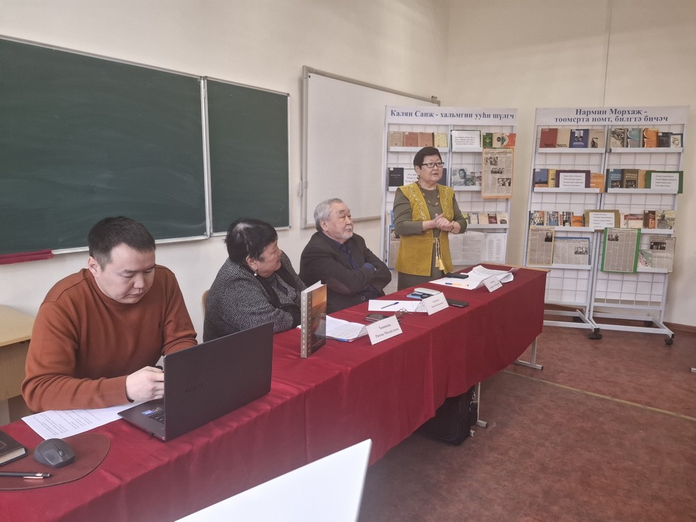 Литературный вечер, посвященный юбилеям калмыцких писателей-классиков – Санджи Каляева (1905–1985) и Нимгира Манджиева (1905–1936), состоялся вчера в Институте калмыцкой филологии и востоковедения. Организатором мероприятия выступила кафедра калмыцкой литературы и журналистики ИКФВ. Модератором была Р.Б. Дякиева, доктор педагогических наук, профессор, заведующий кафедрой калмыцкой литературы и журналистики ИКФВ. В юбилейном мероприятии приняли участие научно-педагогические работники и обучающиеся направлений «Филология» и «Журналистика» ИКФВ.