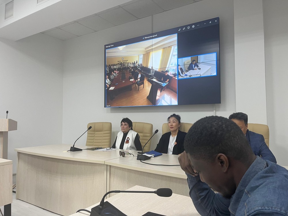Также слушатели из группы РКИ 1.2, приехавшие из Камеруна, Бенина, Кот-д’Ивуара, приняли участие в онлайн-встрече с Монгольским государственным университетом образования, которая была посвящена 80-летию Дня Победы. Они внимательно слушали доцента кафедры истории России, документоведения и архивоведения, кандидата исторических наук Горяева Мергена Саналовича, который рассказал о памятных военных событиях, о вкладе монгольского народа в Победу над фашистами. Организатор встречи, доцент кафедры РКИОД Китляева Светлана Дмитриевна показала участникам видеоролик Мосфильма с кадрами из известных военных фильмов, с песнями о войне.