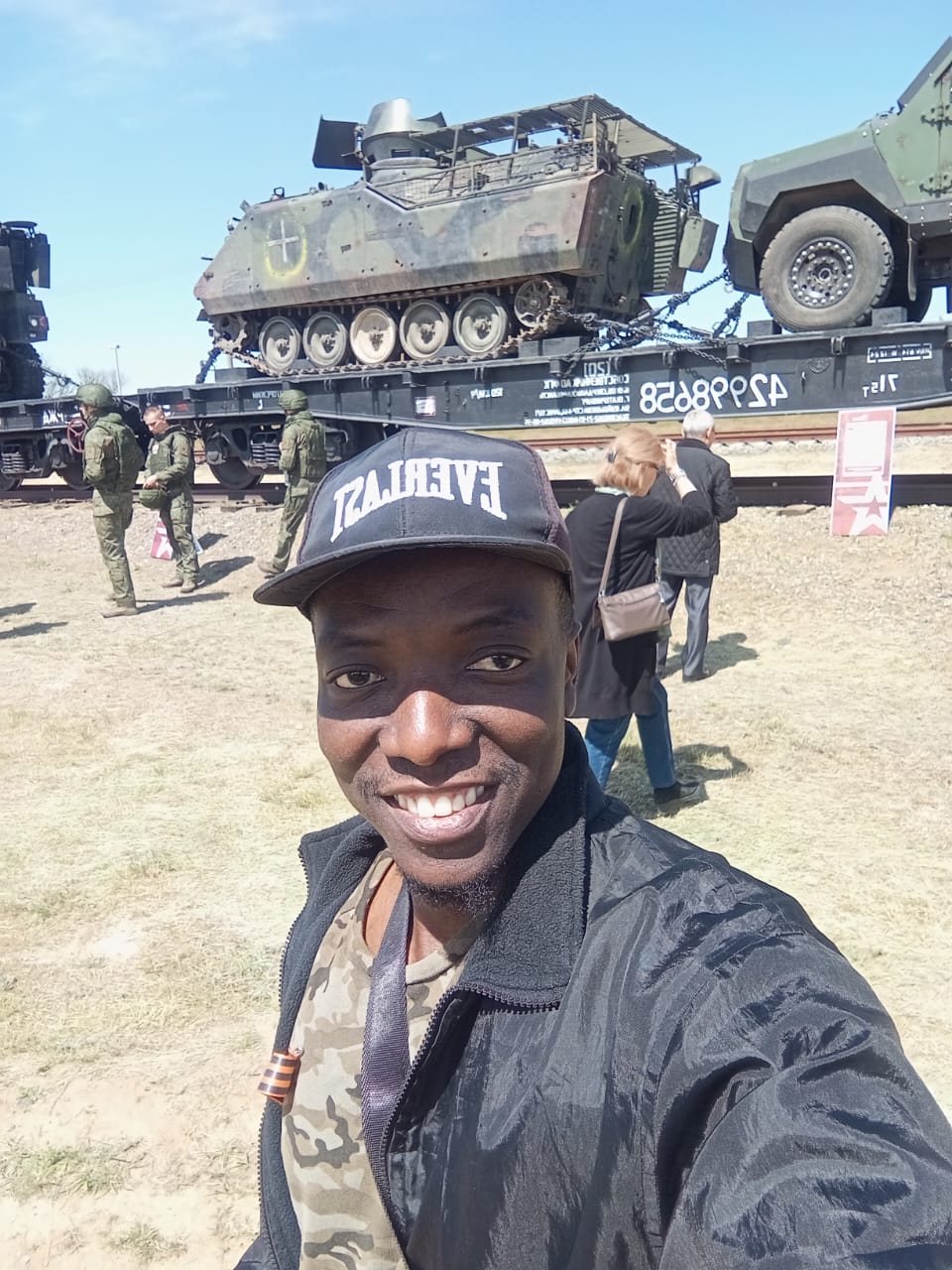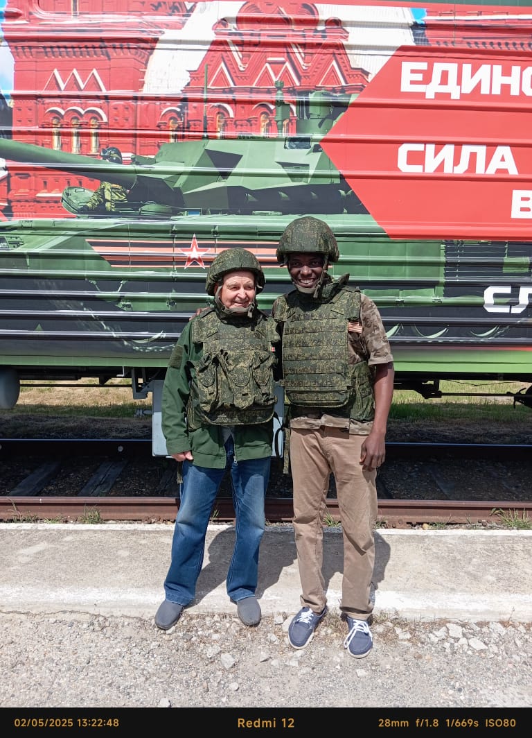 Слушатель факультета довузовской подготовки и обучения иностранных граждан Энонедо Финаньон Лоран, приехавший из Бенина и изучающий русский язык как иностранный по направлению Министерства образования, специально съездил на железнодорожный вокзал Элисты, чтобы увидеть поезд-музей своими глазами. Его сильно удивили военные экспонаты, он пообщался с ветераном ВОВ, примерил военное обмундирование. Лоран по образованию является историком, культурологом, поэтому живо интересуется событиями, которые оставили след в истории России. После экскурсии и изучения материалов о войне, впечатленный трудной судьбой калмыков, он написал следующее обращение, которое, на наш взгляд, необходимо сделать публичным.