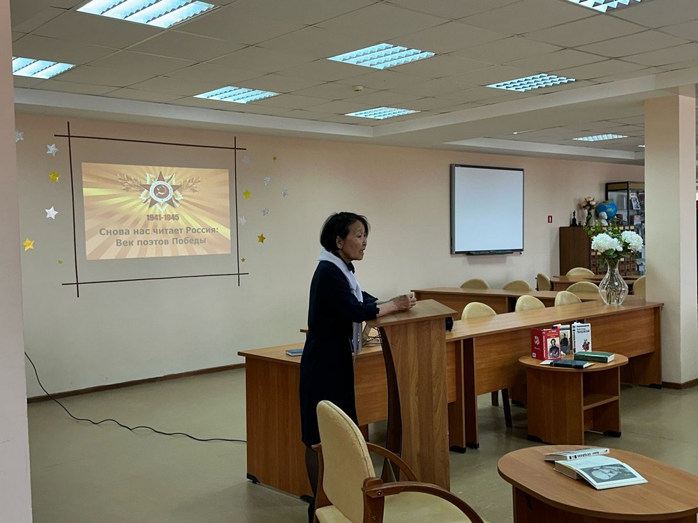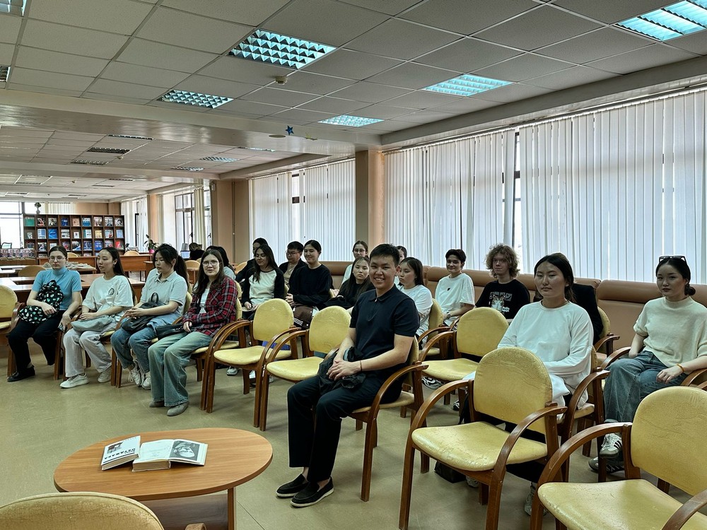 24 апреля студенты 2 курса направления «Зарубежная филология» вместе с куратором О. В. Салыновой посетили Национальную библиотеку имени А. М. Амур-Санана, где в целях гражданско-патриотического воспитания прошел кураторский час «Снова нас читает Россия: Век поэтов Победы».