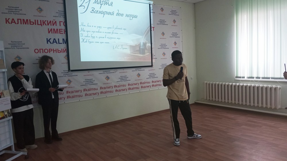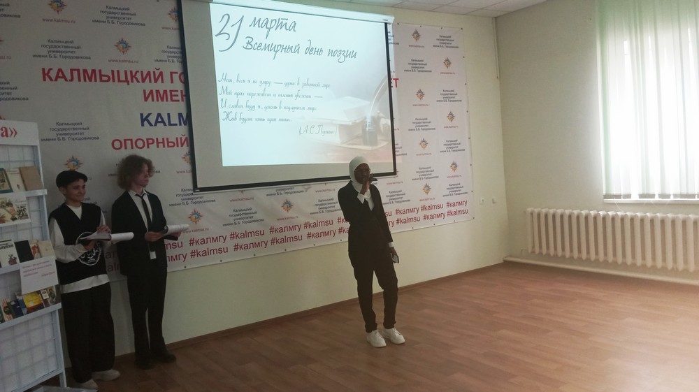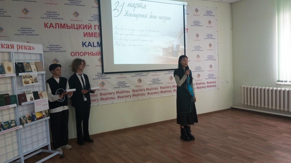 21 марта сотрудники научной библиотеки КалмГУ организовали литературный час «Поэзия, великая река», посвященный Всемирному дню поэзии. Мероприятие собрало стажеров и слушателей ФДПОИГ под руководством старшего преподавателя О.Н. Болдыревой.