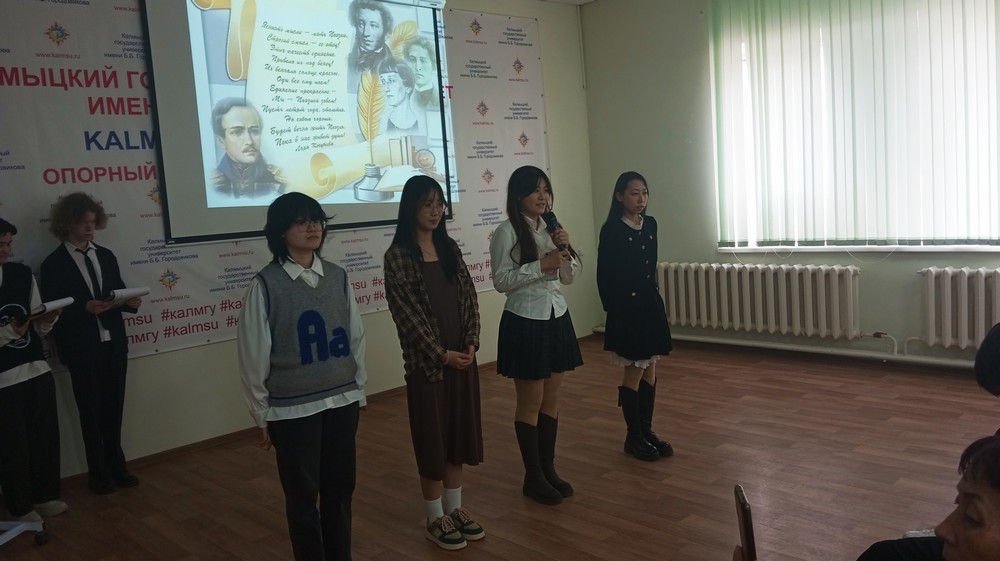 В литературную гостиную библиотеки были приглашены почетные гости: член Союза литераторов Калмыкии и лауреат международных литературных конкурсов Т.И. Бадакова, а также поэты из Совета молодых литераторов Калмыкии во главе с его руководителем Е.Н. Решетниковой. Деятельность Совета направлена на поиск новых талантливых авторов и продвижение современной литературы Калмыкии, поэтому гости с большим интересом слушали чтение стихов студентами КалмГУ.