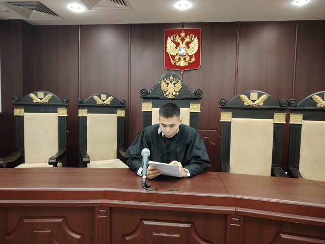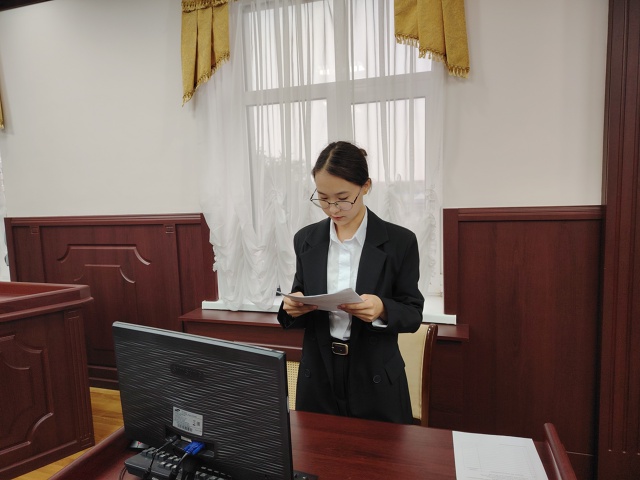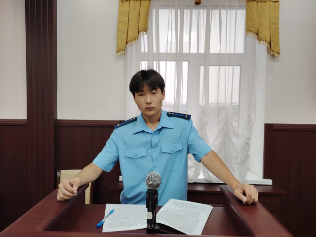 Также для студентов был организован учебный судебный процесс по рассмотрению уголовного дела. Примерив на себя роли председательствующего судьи, прокурора, защитника, секретаря судебного заседания, подсудимого и потерпевших (Данзан Макаев, Савр Андраев, Оюна Маркаева, Владлена Гвоздева, Санал Команджаев, Элина Митенова), будущие юристы смогли, пусть и в предполагаемом варианте, понять, как рассматривается уголовное дело в суде. В учебном процессе посредством видеоконференцсвязи участвовали и учащиеся 11 класса МКОУ «Комсомольская СОШ им.Н.С.Манджиева».