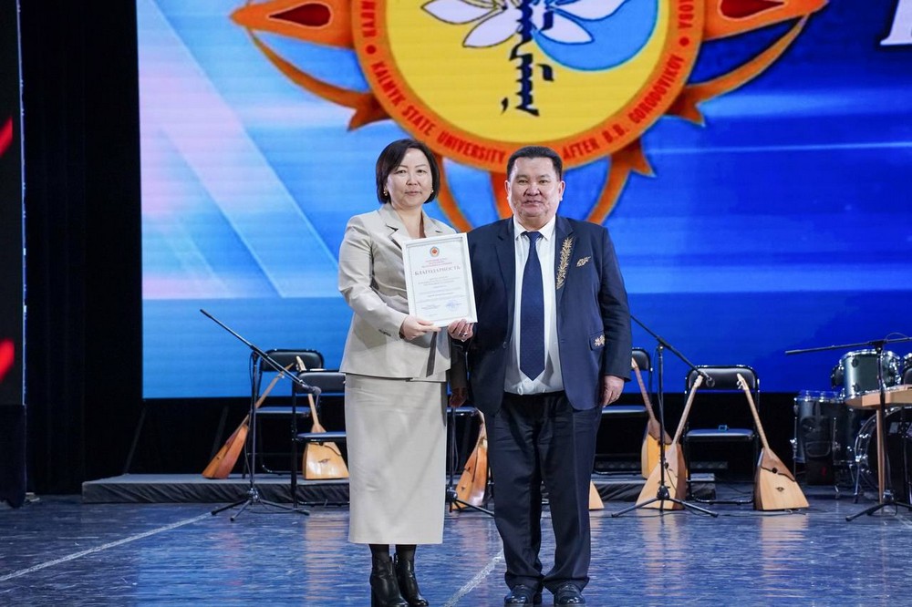 В ходе концерта также прошло торжественное награждение профессорско-преподавательского состава КалмГУ. Как было отмечено, университет гордится своими педагогами, которые ежедневно вдохновляют студентов, передают им знания и помогают раскрывать таланты. Награды получили сотрудники КалмГУ, внесшие значительный вклад в развитие университета и науки.