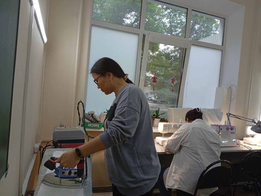 Обучение по профессии «Портной» в КалмГУ набирает обороты! Под руководством преподавателей Ботовой С.Н. и Битюкеевой Л.Х. студенты – слушатели курсов погружаются в тонкости швейного мастерства.