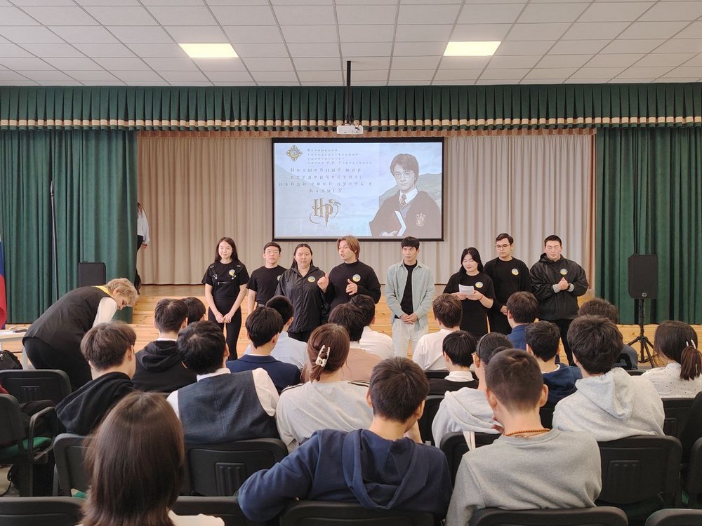 В формате интерактивной игры, вдохновленной серией фильмов «Гарри Поттер», школьники смогли проверить свои знания о КалмГУ, а также узнать много нового о вузе, современной студенческой жизни в университете и важности выбора своей будущей специальности. В ходе встречи студенты рассказали и о значимом событии – в этом году исполняется 55 лет со дня открытия Калмыцкого государственного университета на базе Калмыцкого педагогического института.