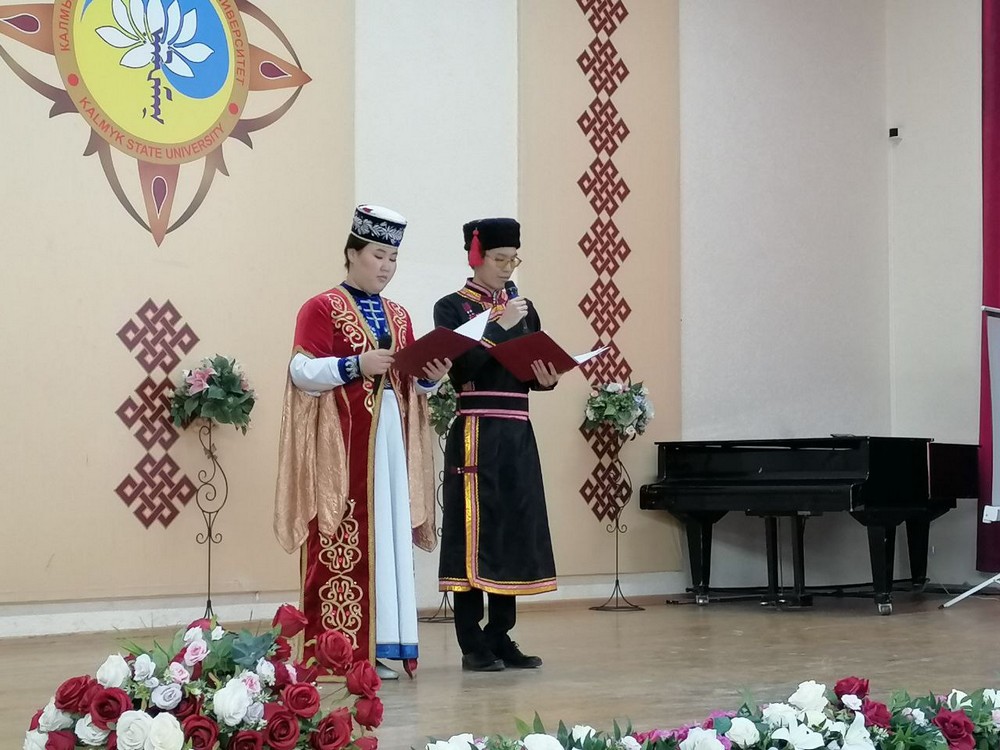 В рамках мероприятия с интересными выступлениями выступили преподаватели и студенты, занимающиеся изучением монгольского, китайского и корейского языков. Мерген Владимирович Босхомджиев, кандидат филологических наук, подчеркнул значимость монгольского языка для калмыков, как части монгольской языковой семьи.