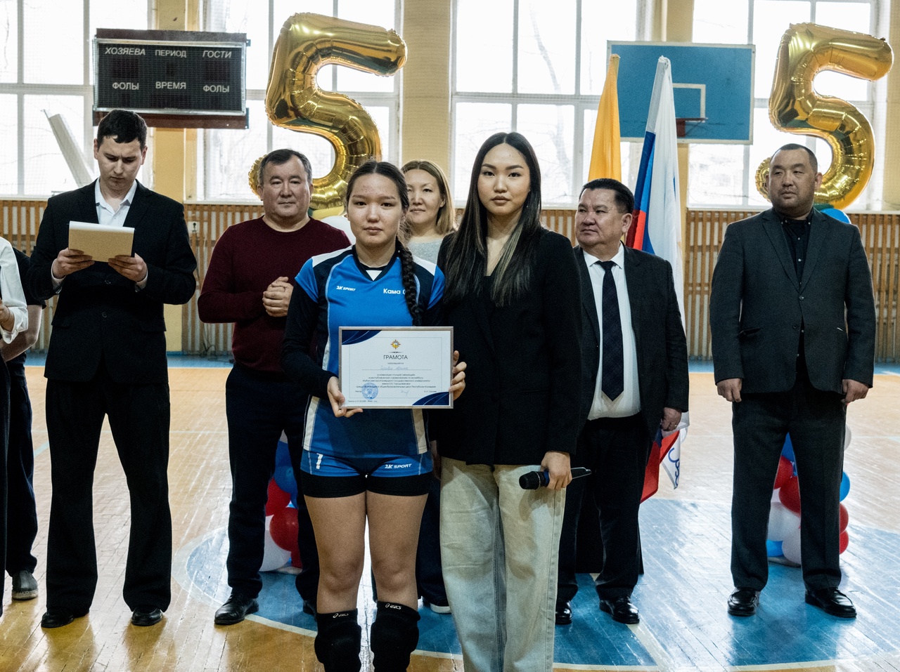 На церемонии присутствовали ректор КалмГУ Бадма Салаев, врио министра образования и науки РК Антон Натыров, замминистра спорта и молодежной политики РК Тимофей Доржинов и другие почетные гости.