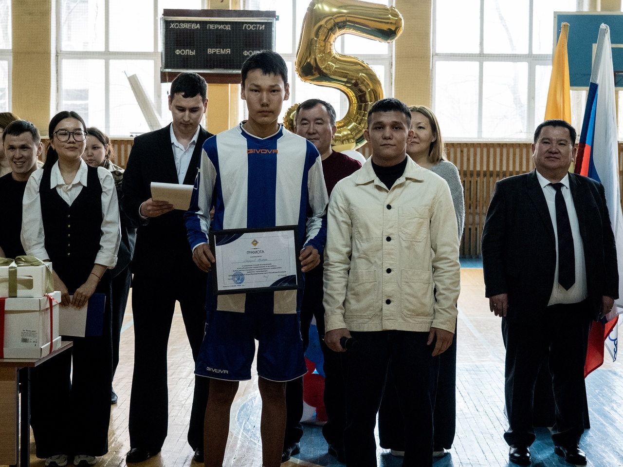 По итогам упорной борьбы в соревнованиях по мини-футболу победителем стала команда Комсомольской средней школы имени Н.С. Манджиева, второе место у школы №18 г. Элисты, и третье место у сборной Октябрьского района.
