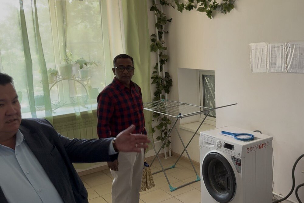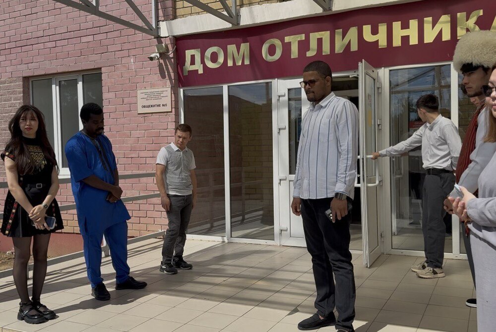 Ректор КалмГУ Бадма Салаев лично провёл для индийских коллег экскурсию по современному общежитию «Дом отличника», где созданы все условия для комфортной жизни студентов.