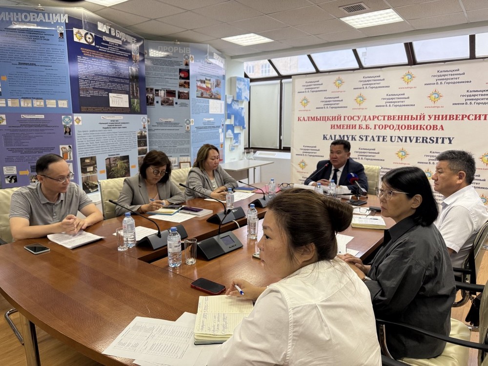 Сегодня в Калмыцком государственном университете под председательством ректора Бадмы Салаева состоялось рабочее совещание с руководством Бурятского государственного университета им. Д. Банзарова и Тувинского государственного университета. Мероприятие было посвящено подготовке к Заседанию консорциума вузов «Буддийское образование» в рамках предстоящего III Международного буддийского форума.