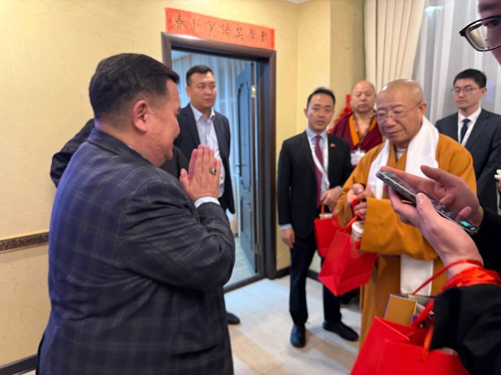 В состав китайской делегации вошли Первый секретарь Посольства Кан Сяосин, атташе Го Хаоюй, а также представители буддийских ассоциаций Китая и Внутренней Монголии, включая Пэн Минкуаня, Ба Лиди, Ши Чэнхуаня, Дао Цзяня и Цин Гэлэ. Также делегацию сопровождал заместитель председателя Фонда культуры и образования Чунцин Хуаянь Инь Яньхун.
