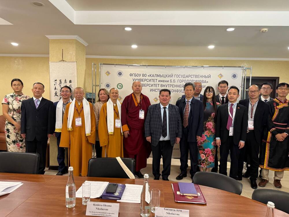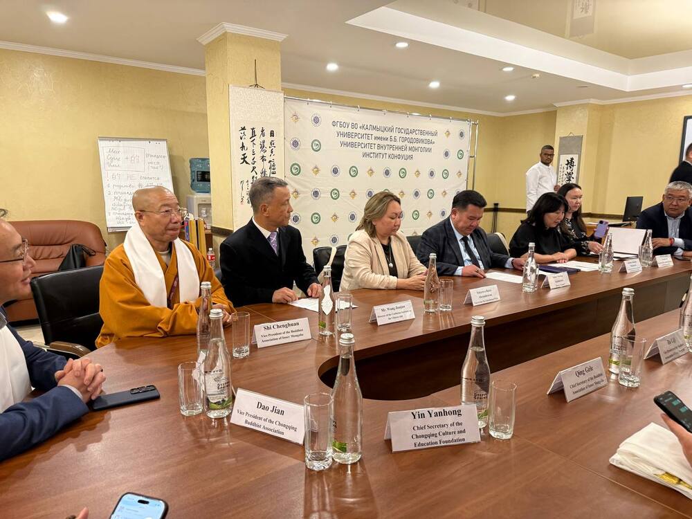 Со стороны КалмГУ во встрече приняли участие ректор университета Бадма Катинович Салаев, проректоры, а также директора Института Конфуция с российской и китайской сторон – Айса Николаевна Гаряева и господин Ван Цзяньцзюнь.