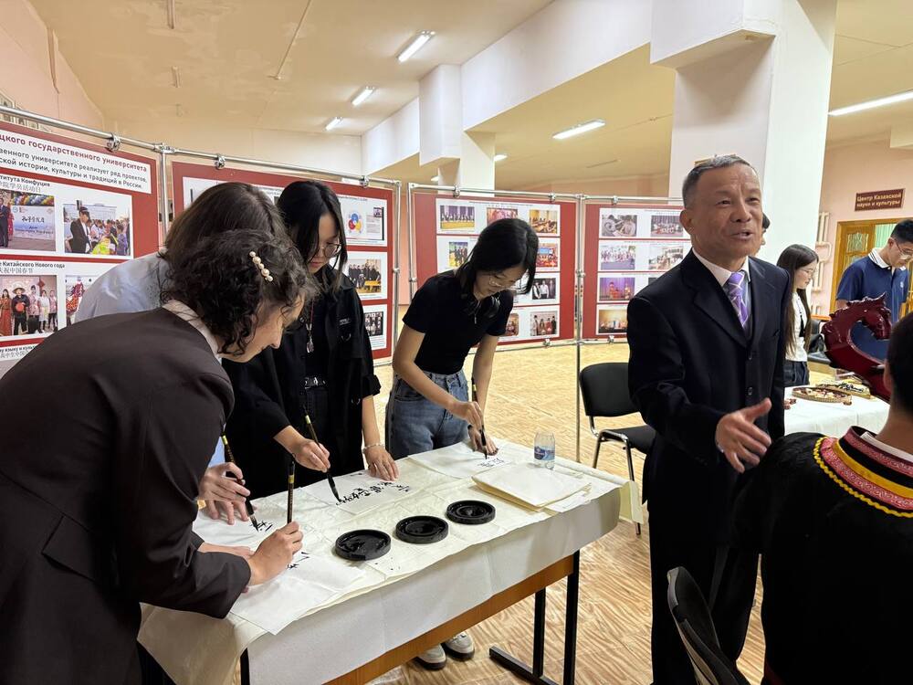 Программа визита началась со знакомства гостей с деятельностью Института Конфуция, который много лет успешно работает на базе КалмГУ совместно с Университетом Внутренней Монголии. Студенты и школьники, посещающие курсы при институте, продемонстрировали гостям свои языковые навыки, пообщавшись с ними на китайском языке.