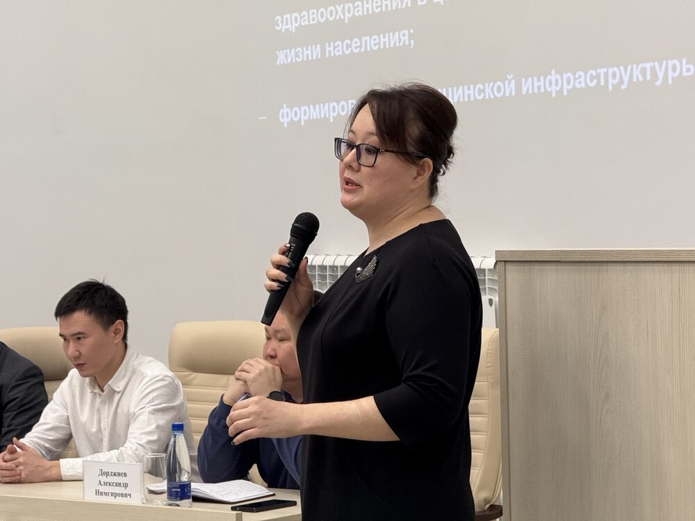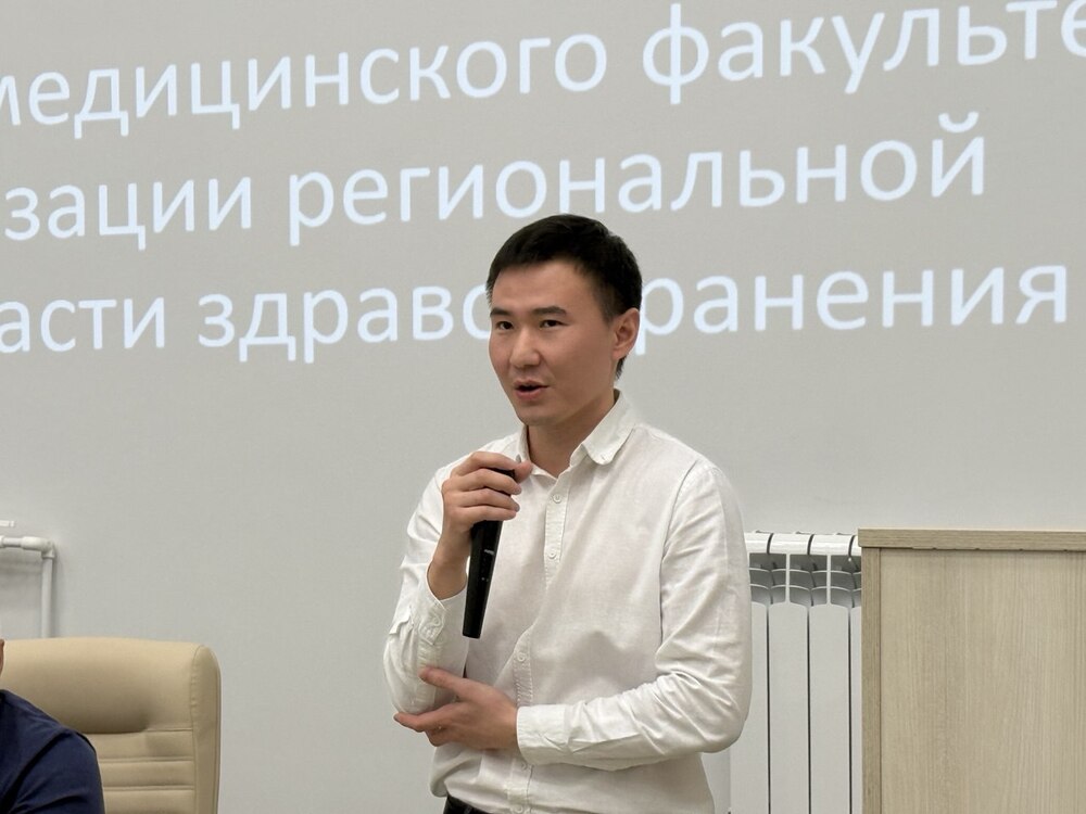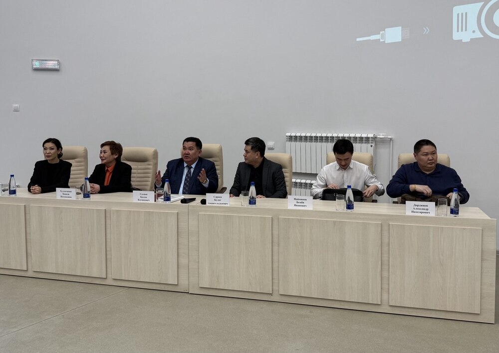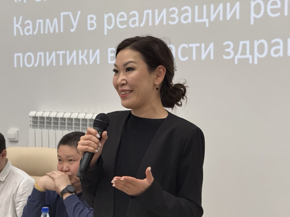 Сегодня в КалмГУ прошла встреча студентов медицинского факультета с ректором Бадмой Салаевым, и.о. министра здравоохранения РК Булатом Сараевым и главными врачами медицинских учреждений республики: Саглар Чумпинова из Республиканской больницы им. П.П. Жемчуева, Александр Дорджиев из РДМЦ им. Манджиевой В.Д., Бембя Найминов из Городской поликлиники и Киштя Хулхачиева из Республиканского центра скорой медицинской помощи и медицины катастроф.