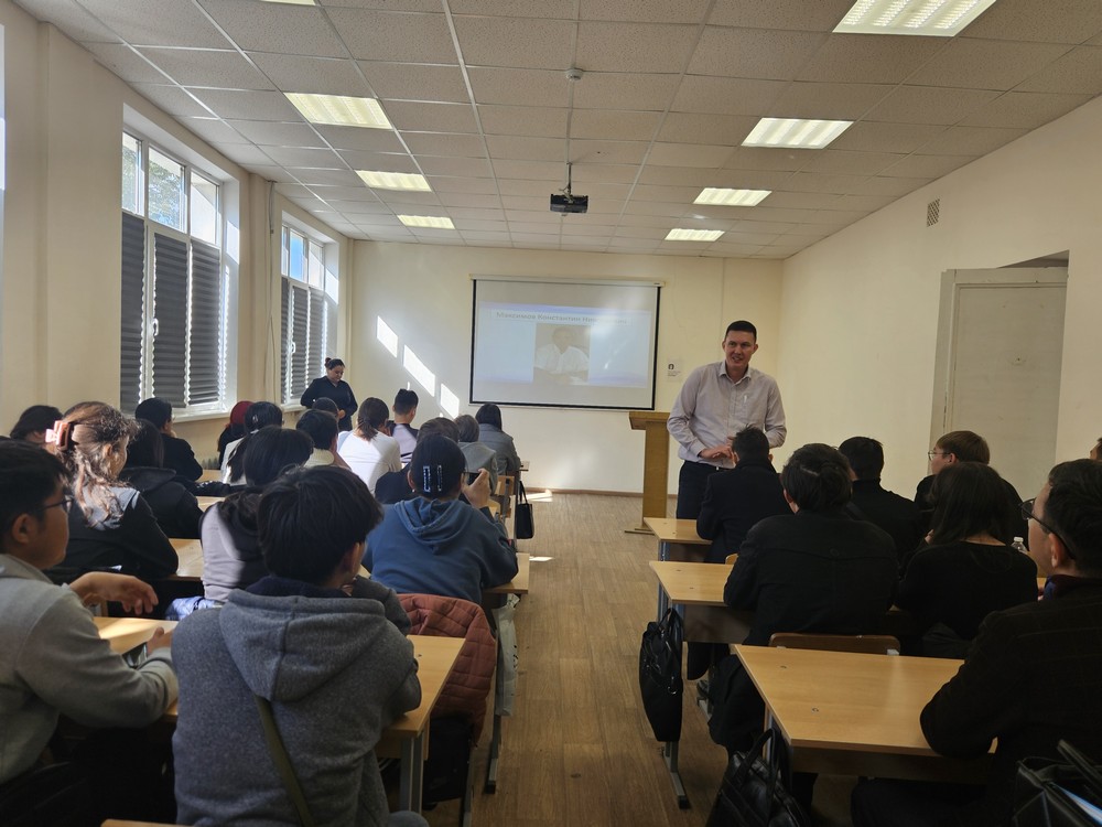 В рамках встречи доцент Евгений Николаевич Убушаев поделился со студентами личными воспоминаниями о коллегах, чьи имена вошли в «золотой фонд» университета. Особое внимание он уделил рассказу о Константине Николаевиче Максимове — ученом с уникальной судьбой. Выпускник Московского государственного историко-архивного института, прошедший путь от слесаря паровозного депо до члена Совета Федерации, Константин Николаевич участвовал в разработке Конституции России 1993 года и создал фундаментальные труды по истории Калмыкии.