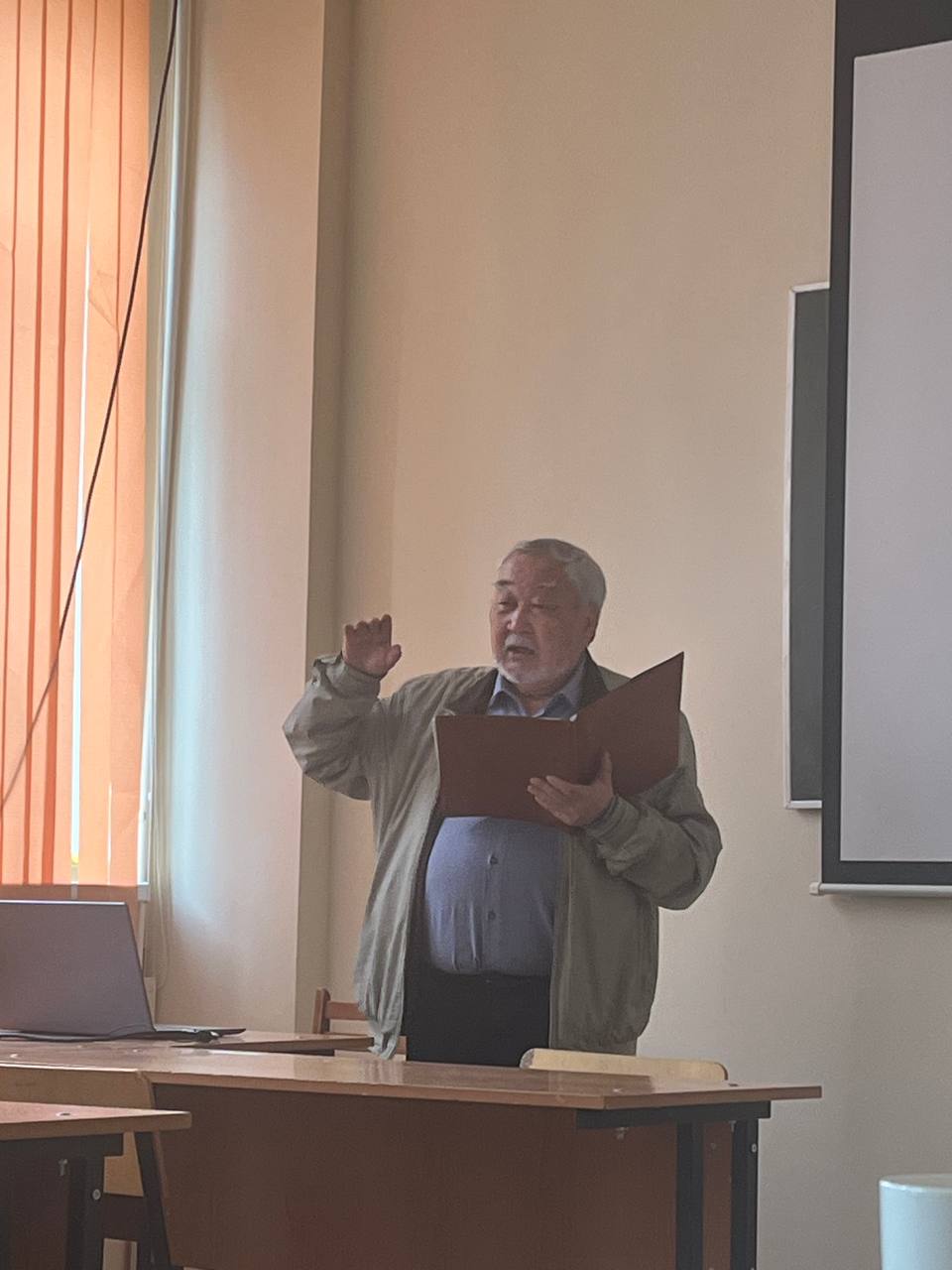 На кураторском часе, приуроченном к 80-летию Победы в Великой Отечественной войне, по приглашению доцента кафедры биологии и экологии Дорджиевой В.И. перед студентами-биологами 1-2 курсов выступил известный ученый, писатель Манджиев Николай Церенович. Круг научных интересов Николая Цереновича как ученого достаточно широк, кроме филологических исследований, он занимается историей Калмыкии, этнографией. Особое место в творчестве писателя занимают работы, посвященные военной тематике, в частности, работы о Великой Отечественной войне.