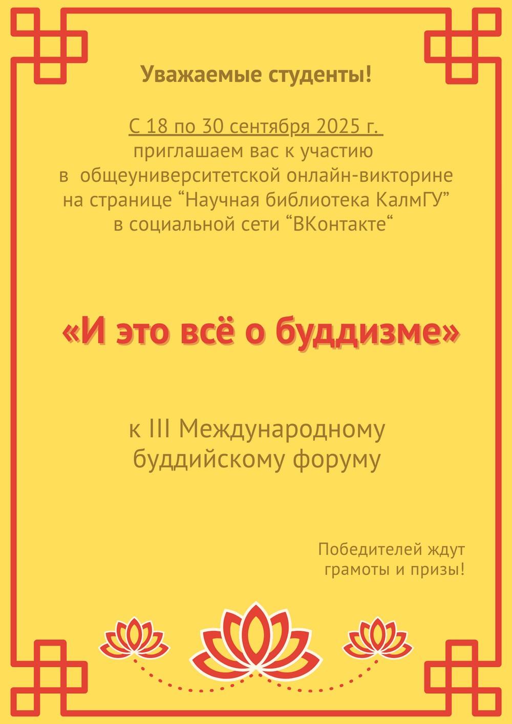 Студентов КалмГУ приглашают к участию в онлайн-викторине «И это все о буддизме»