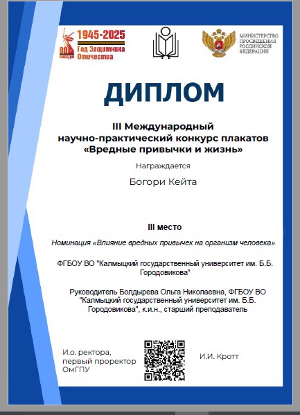 С 01 февраля по 30 апреля проходил III Международный научно-практический конкурс плакатов «Вредные привычки и жизнь», организованный Российским университетом дружбы народов...