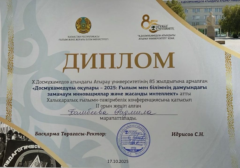 17-18 октября 2025 г. в Республике Казахстан в Атырауском государственном университете им. Х. Досмухамедова проходила международная научно-практическая конференция «Досмухамедовские чтения...